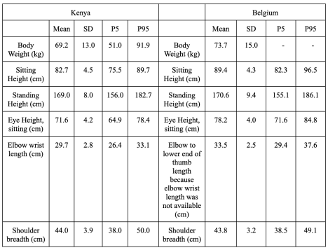 Mailutha, J.T., Simatei, J.K. & Nguru, K.R. (2007). Anthropometric Data for Kenya’s Working Population Group, CABI Databases.
